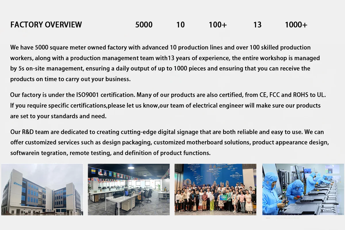 मुख्य उत्पादों: विज्ञापन मशीन, डिस्प्ले, मॉनिटर, इलेक्ट्रॉनिक डिस्प्ले, डिजिटल डिस्प्ले